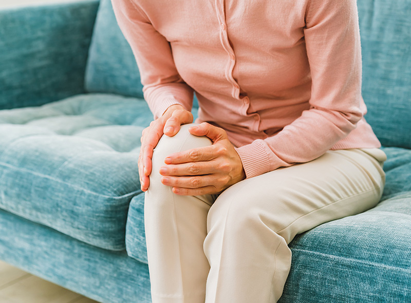 変形性膝関節症は、膝の痛みや腫れのほか水が溜まるなどの症状を伴う疾患です。発症初期には動作開始時(歩行開始時や立ち上がる時など)に痛みが起き、動作をやめると治まります。しかし悪化すると常時痛むようになり、生活の質が大きく低下します。状態としては骨や関節の変形、関節の軟骨摩耗などが起こっています。